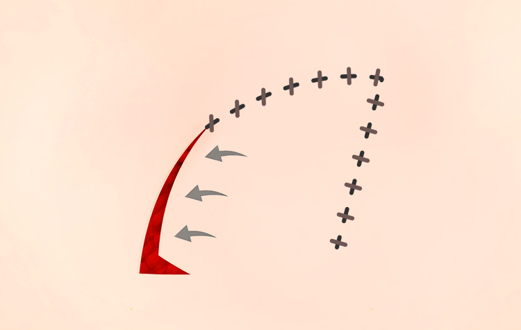 흉터를 여러 개의 짧은 분절로 나누어 각 변의 길이를 짧게 만들고,
