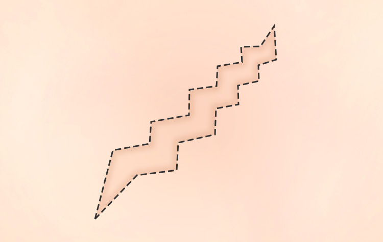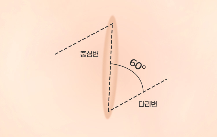 피부 주름선과 평행한 흉터는 눈에 잘 띄지 않는 성질이 있으며, 오그라진 피부 길이를 길게 해주거나, 흉터의 방향을